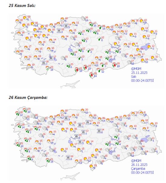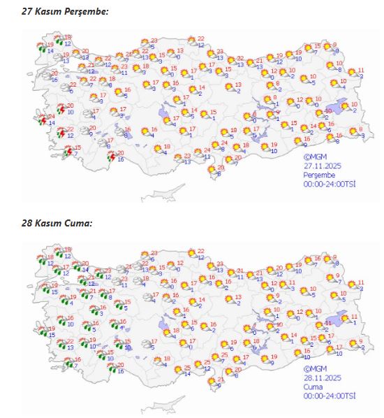 - Marmara ve Ege bölgelerinde ise hafif yağmur geçişleri bekleniyor.