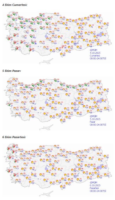Meteoroloji Genel Müdürlüğü (MGM), hafta sonuna yönelik hava durumu tahminlerini paylaştı.