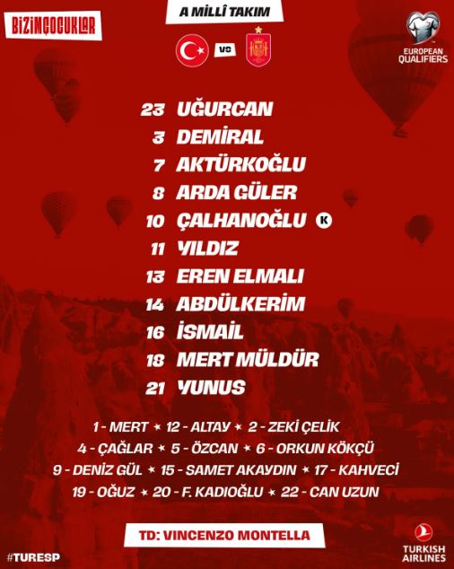 Türkiye - İspanya maçında ilk 11’ler belli oldu!