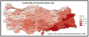 Nüfus projeksiyonlarına göre; çocuk nüfus oranının 2025 yılında yüzde 26,6, 2030 yılında yüzde 25,6, 2040 yılında yüzde 23,3, 2060 yılında yüzde 20,4 ve 2080 yılında yüzde 19,0 olacağı öngörüldü.