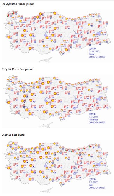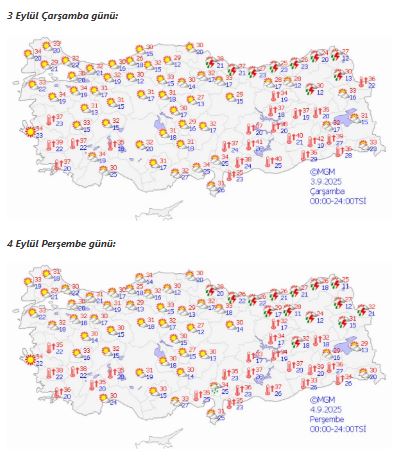 Önümüzdeki günlerde kuzey ve iç kesimlerde sıcaklıkların mevsim normallerine yaklaşması, güney bölgelerde ise 30 derece civarına kadar gerilemesi bekleniyor. Marmara ve Karadeniz’in doğusunda ise yer yer sağanak yağışların etkili olabileceği tahmin ediliyor.