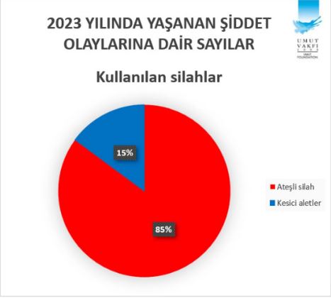 Yaşanan silahlı şiddet olaylarının 3 bin 212’sinde yani yüzde 85’inde kalaşnikof, otomatik tüfekler dahil ateşli silahlar (106’sı beylik silahı toplam 2 bin 427’si tabanca ve 784’ü tüfekler), yüzde 15’ine denk gelen 561’inde de bıçaklardan baltalara her tür kesici alet kullanıldı.