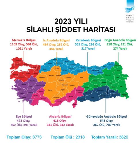 Türkiye'nin 2023 yılı silahlı şiddet haritası yapıldı.