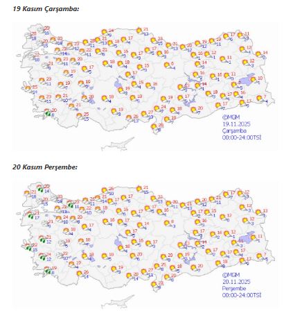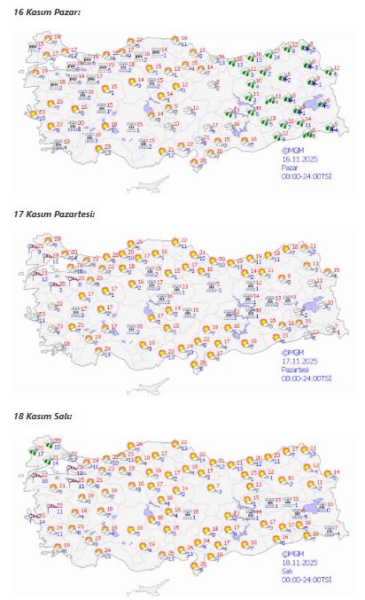 Güneydoğu Anadolu’nun Gaziantep ve Şanlıurfa gibi illerinde sıcaklık 24-26 derece, Ege’de Aydın ve Muğla’da 23-25 derece bekleniyor.