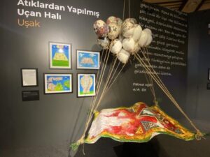 Atıklardan Yapılmış Uçan Halı, Nuh'un Gelecek Gemisi, eserlerin hazırlanma hikayesiyle birlikte ziyaretçilerle paylaşılıyor.