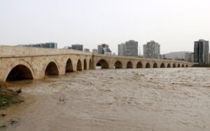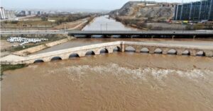 Sivas’ta nehir üzerinde yer alan Selçuklu eseri olan 173 metre uzunluğundaki tarihi Eğri köprünün 18 kemerinin tümünden su akar oldu. Tarihi kemer köprü uzun yıllar sonra ilk kez böyle görüntülendi. Coşkun akan ırmak adını aldığı kızıl rengine büründü.