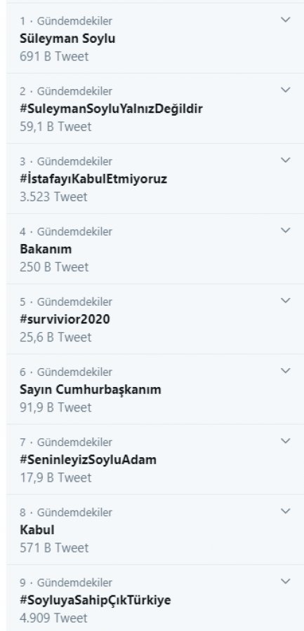 "Süleyman Soylu, Süleyman Soylu yalnız değildir, İstifayı kabul etmiyoruz, Bakanım, Seninleyiz Soylu Adam" gibi ifadeler kısa sürede TT oldu.