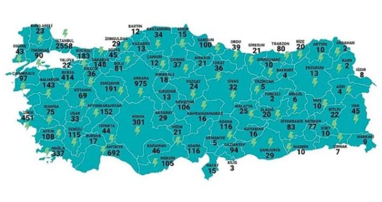 Elektrikli araçların Edirne'den Kars'a kesintisiz ulaşımını sağlayacak Türkiye'nin şarj istasyonu haritası ilk kez ortaya çıktı.