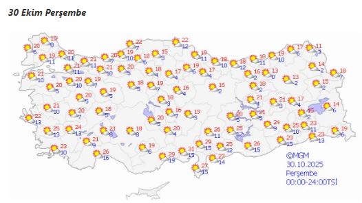Bugün Marmara ve Karadeniz’de hava daha serin seyrederken, İstanbul 19 derece civarında bir gün geçirecek. Ege’de İzmir 23 dereceye ulaşırken, Akdeniz’in parlayan yıldızı Antalya 30 derece ile adeta yazdan kalma bir gün yaşayacak. İç Anadolu’nun başkenti Ankara’da 15 derece ölçülecek.