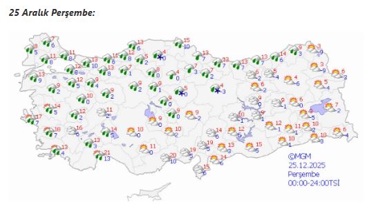 Perşembe günü de benzer hava koşullarının sürmesi öngörülüyor. İç ve doğu kesimlerde kar yağışı etkili olurken, batı bölgelerde yağmur ve pus görülebilir. Gece saatlerinde iç kesimlerde sıcaklıkların sıfırın altına inmesi bekleniyor.
