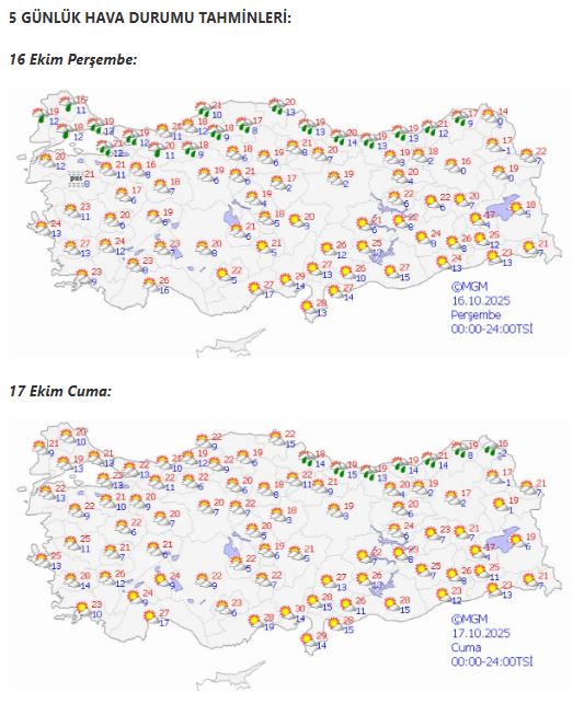 Meteoroloji Genel Müdürlüğü (MGM), önümüzdeki 5 güne ilişkin hava tahmin raporunu yayımladı.