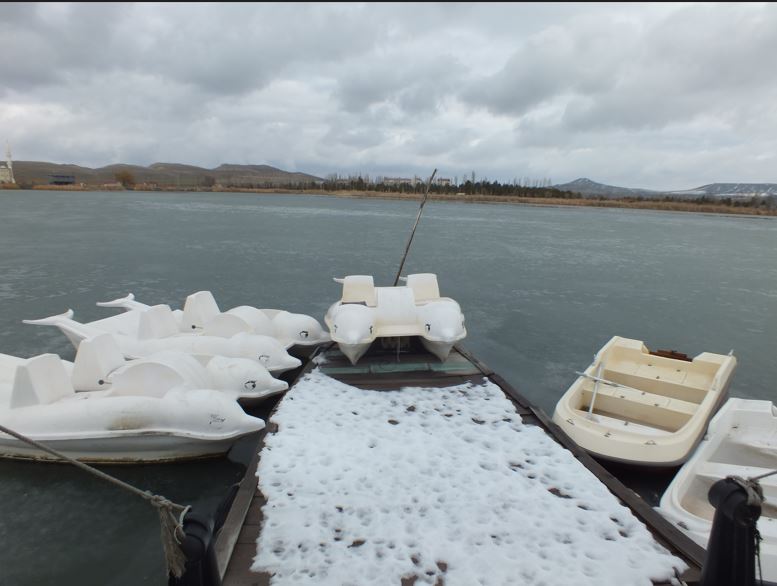 İlçe sakinlerinden Hıdır Kaya, gölün yüzeyinin 5 santimetre buzla kaplandığını belirterek, "Geçen yıla göre bu yıl buzun kalınlığı az. İlerleyen günlerde biraz daha kalın olur." dedi.