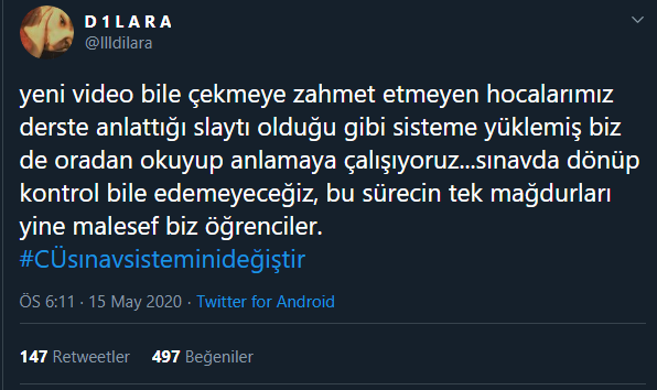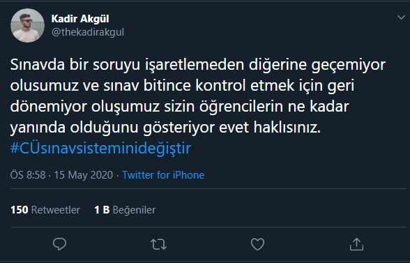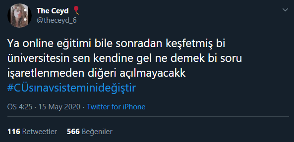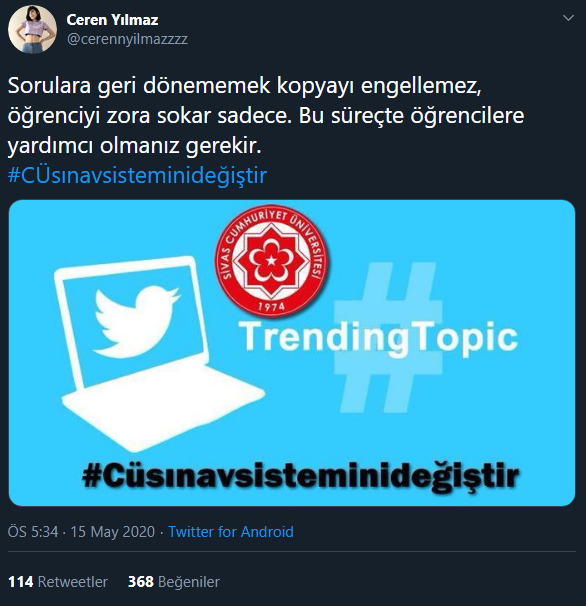 Açıklanan sınav sistemi sonrası öğrenciler tepki olarak #CÜsınavsisteminideğiştir hashtagı ile tweet atarak Twitter'ın Türkiye gündemine girdi.