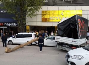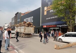 Kaza, Mahmudiye Mahallesi Ertuğrulgazi Caddesi üzerinde meydana geldi. Naci Y. yönetimindeki tomruk yüklü 16 AHP 688 plakalı kamyonun kasasından 2 ton ağırlığındaki tomruk, yol kenarında park halindeki 16 NK 247 plakalı kamyonet, 16 AJD 745 plakalı otomobil ile 16 DUU 327 plakalı otomobilin üzerine düştü.