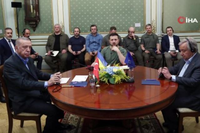 Cumhurbaşkanı Recep Tayyip Erdoğan, Ukrayna Devlet Başkanı Vladimir Zelenskiy ve BM Genel Sekreteri Antonio Guterres ile üçlü görüşme gerçekleştirdi.