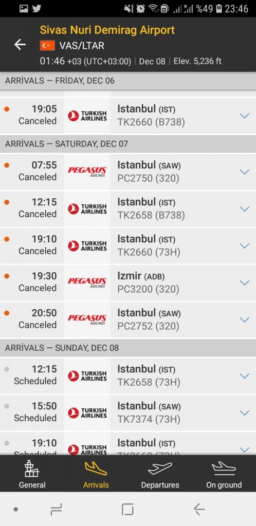 Bu nedenle havalimanına iniş ve kalkış yapması beklenen uçaklar yoğun sis sebebiyle uçuş gerçekleştiremedi ve uçuşlar iptal edildi.