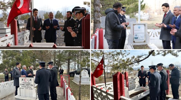 Kaymakam Esad Mücahit Eskimez, Belediye Başkanı Turan İlbey, İlçe Emniyet Amiri Yavuz Yılmaz, İlçe Jandarma Komutanı Necati Altınok ve kurum amirlerinin katılımıyla gerçekleştirilen programda, ilçede medfun bulunan kahraman şehitlerin kabirleri ziyaret edildi.