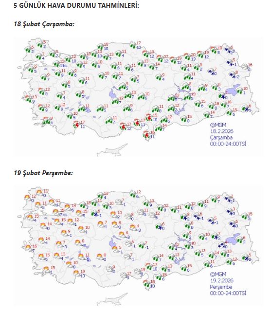 Perşembe günü itibarıyla sıcaklıklarda hissedilir düşüş yaşanması, iç ve batı bölgelerde değerlerin 0-11 derece bandına kadar gerilemesi öngörülüyor. Marmara ve Ege’de yer yer karla karışık yağmur geçişleri beklenirken, Karadeniz ve İç Anadolu’nun yüksek kesimlerinde kar yağışı ihtimali artıyor. Güneydoğu Anadolu ve Akdeniz’in bazı bölgelerinde ise hava sıcaklıklarının görece daha ılıman seyretmesi bekleniyor.