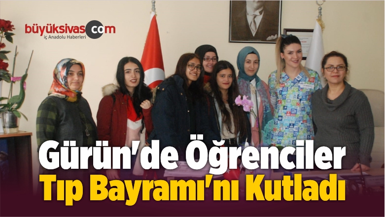 Gürün Devlet Hastanesi'ni ziyaret eden üniversite öğrencileri hastane başhekimi Aysun Şahin ile bir araya geldi. Başkehim Şahin'in ve sağlık çalışanlarının 14 Mart Tıp Bayramı'nı kutlayan öğrenciler çiçek takdim etti.
