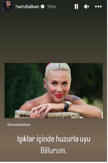 Instagram hesabından Billur Kalkavan'ın fotoğrafını paylaşan yönetmen Hamdi Alkan "Çok üzgünüm… Işıklar içinde uyu canım Billur" mesajını yazdı.
