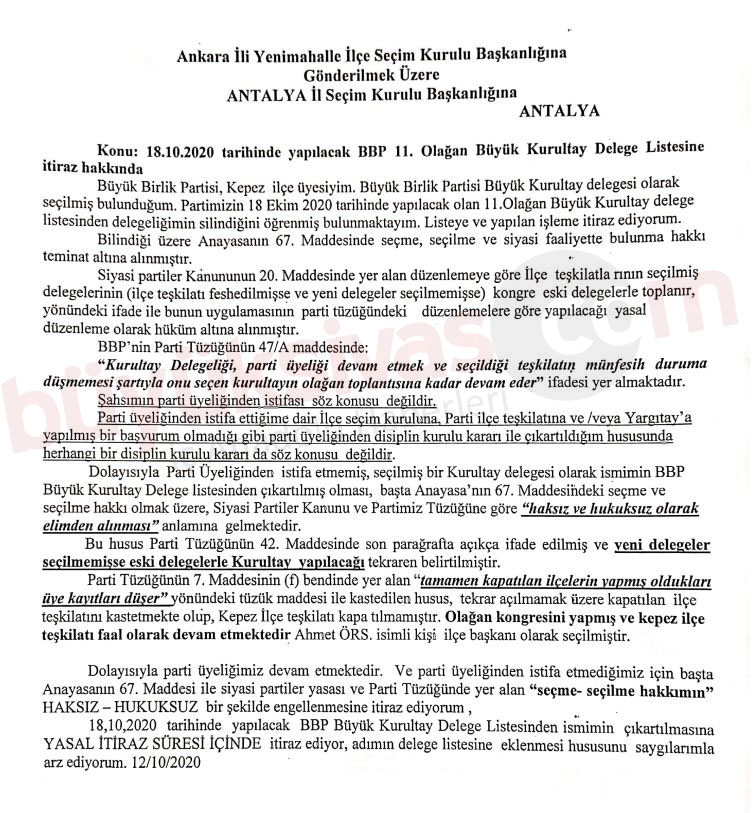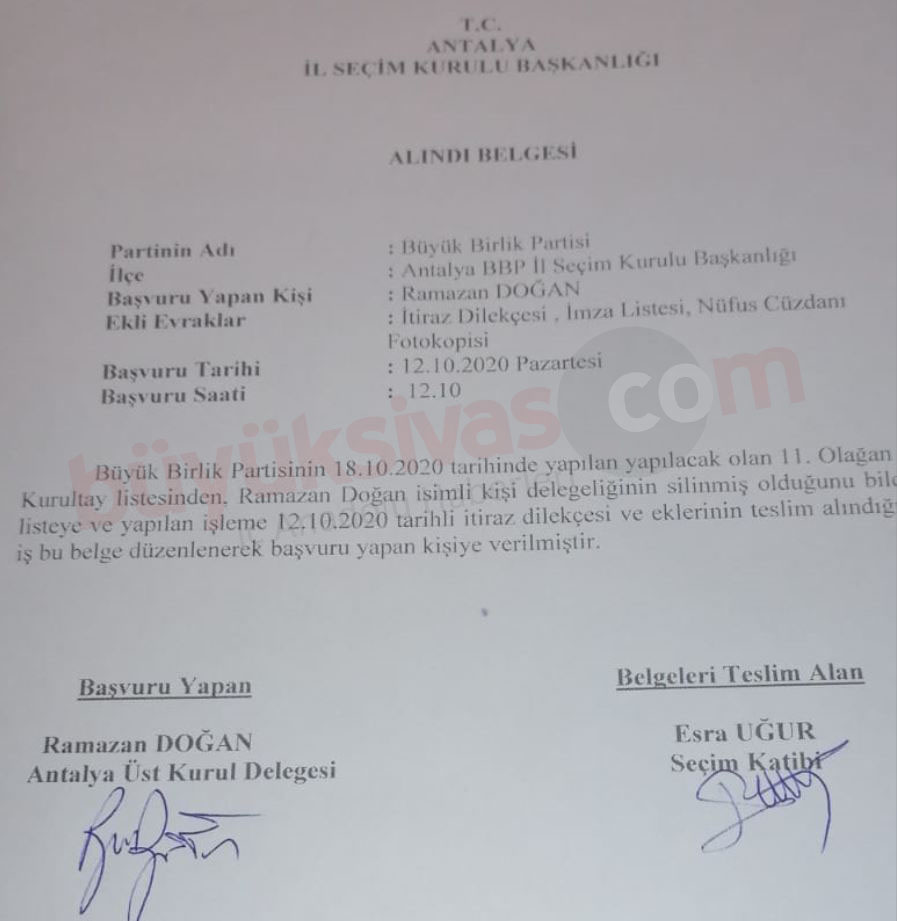 Geçtiğimiz günlerde BBP Genel Başkanlığına aday olduğunu duyuran Ramazan DOĞAN'ın aday olması engellendi. Doğan konuyla ilgili açıklama yaparak süreçle ilgili belgeleri de paylaştı.