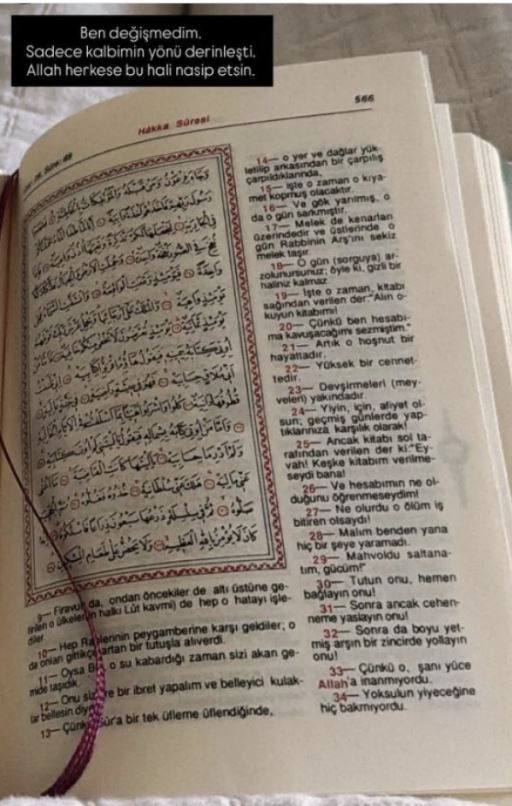 Yurt dışında olduğu öğrenilen Subaşı, sosyal medya hesabından Kur’an-ı Kerim okuduğu anlara dair bir paylaşım yaptı.
