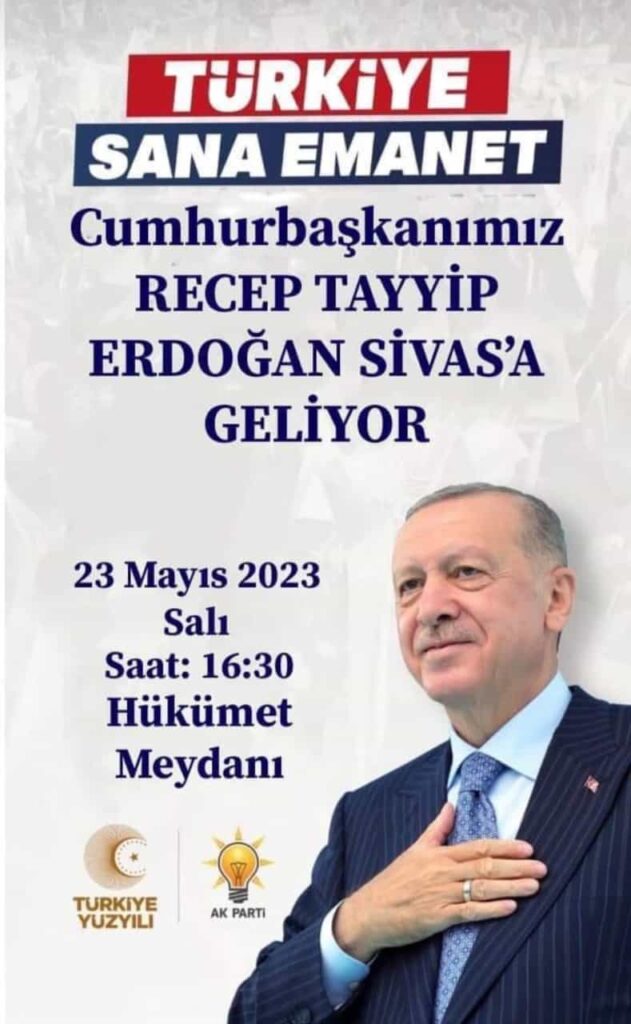 Cumhurbaşkanlığı seçimlerinin 2.tura kalmasından sonra seçimlerin yapılacağı 28 Mayıs tarihinden önce Cumhurbaşkanı Recep Tayyip Erdoğan Sivas'a gelecek.