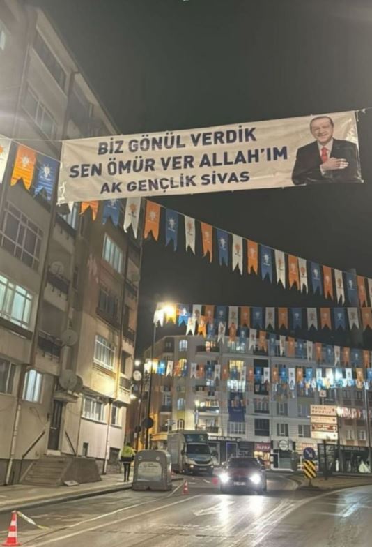 Miting öncesi AK Parti teşkilatları Sivas'ı adeta bayraklarla ve Cumhurbaşkanı Erdoğan fotoğraflarıyla donattı.