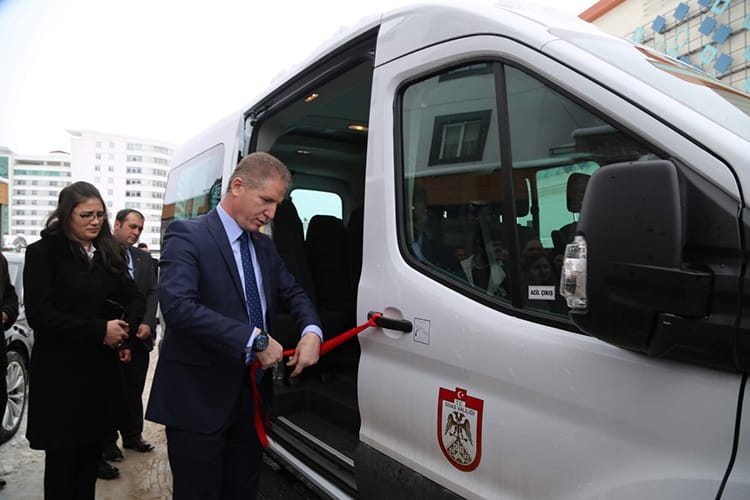 Daha sonra Vali Gül basın mensupları için yeni alınan aracı tanıtarak temsili kurdele kesti.
