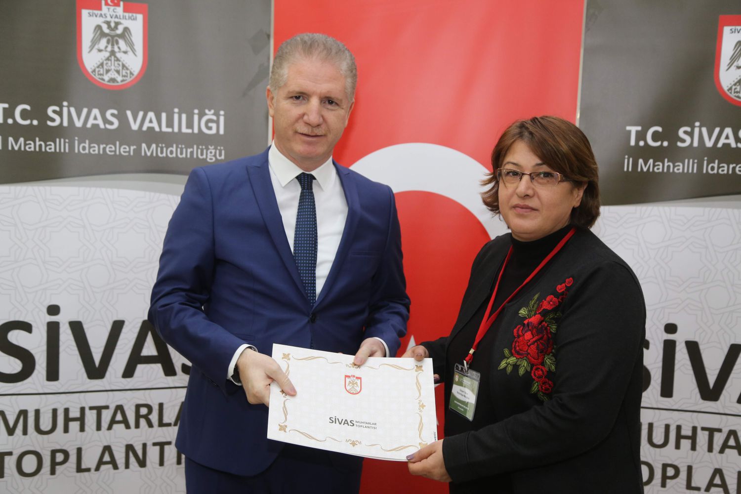 Toplantının sonunda muhtarlara katılım sertifikaları Vali Davut Gül tarafından takdim edildi.