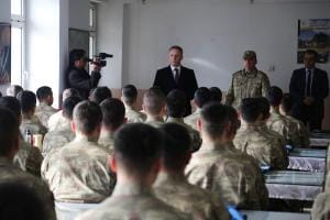 İl Jandarma Komutanı Albay Sinan Şen ve komando birliği tarafından karşılanan Vali Gül, Jandarma Asayiş Komando Bölüğü Binası ve arazisinde incelemelerde bulundu. Askerleri selamlayan ve onlarla bir süre sohbet eden Gül, yeni göreve başlayan ve terörle mücadele de görev alacak erbaşlara seslendi.