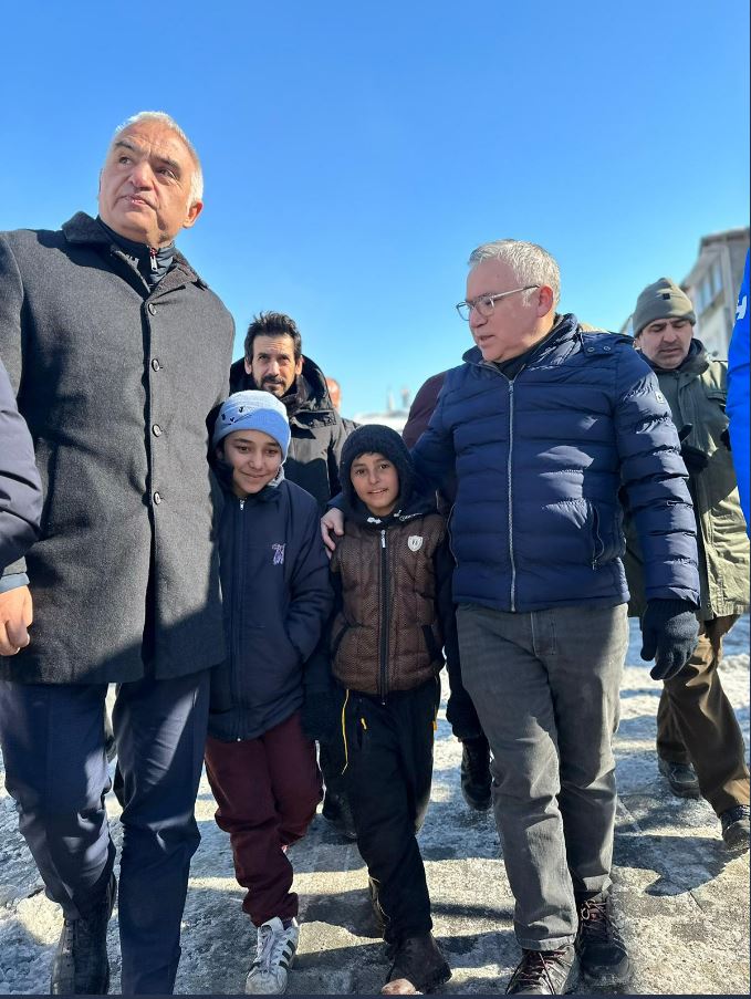Bugün Vali Şimşek afet bölgesi Malatya Doğanşehir'de bulunan Kültür ve Turizm Bakanı Mehmet Nuri Ersoy ile birlikte ilçenin farklı noktalarında kurulan çadır kentlerde incelemelerde bulunarak, depremzedelerle bir araya geldi.