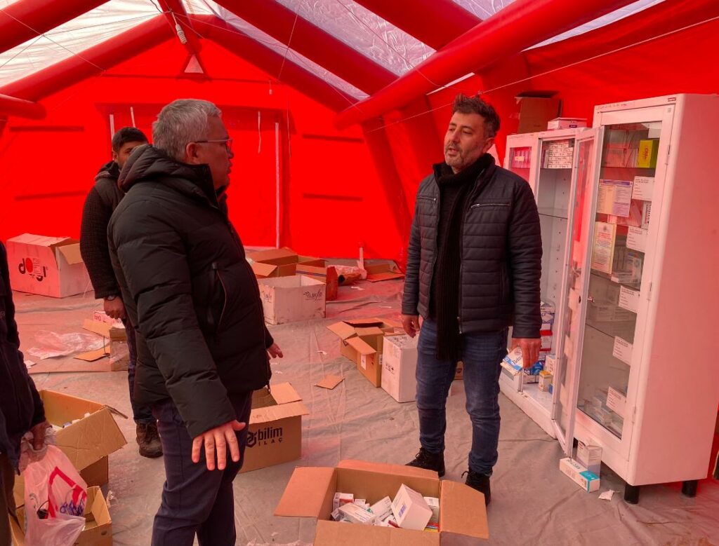 Depremin ilk gününden beri Malatya'nın Doğanşehir ilçesinde bulunan Sivas Valisi Dr. Yılmaz Şimşek kurulan eczaneyi ziyaret etti