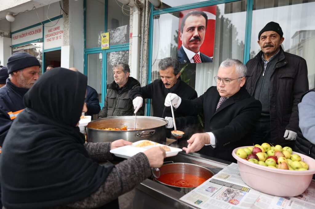 Yardımseverlerin katkılarıyla her cuma günü namaz sonrası vatandaşlara sıcak yemek ikramında bulunulan dernekte yemek dağıtımına da eşlik eden Vali Şimşek, emeği geçenlere teşekkür etti.