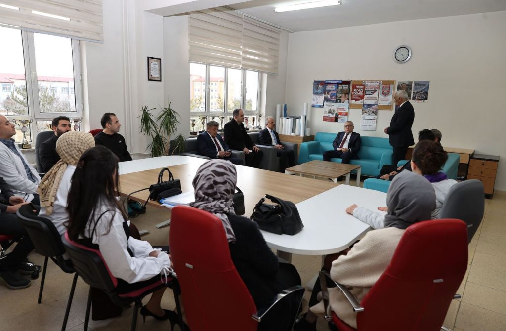 Öğretmenler odasında eğitimcilerle de bir araya gelen Vali Şimşek, öğrencilerin yetişmesinde büyük emekleri olan öğretmenlere teşekkür etti. (Emre Gençleşen)