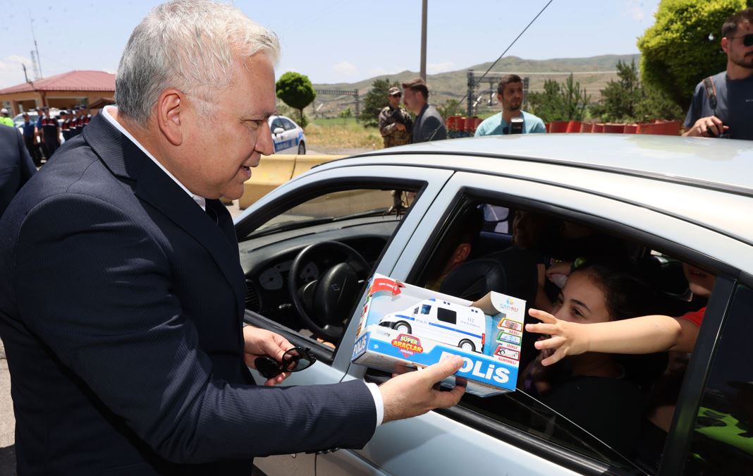 Sivas Valisi Yılmaz Şimşek, Kurban Bayramı arifesinde Ankara yolu üzerinde bulunan uygulama noktasını ziyaret etti. Güvenlik güçlerinin bayramını kutlayan Vali Şimşek, yoldan geçen araçlardaki sürücü ve yolculara da emniyet kemeri takmaları ve trafik kurallarına uymaları konusunda uyarılarda bulunarak bayramlarını tebrik etti.