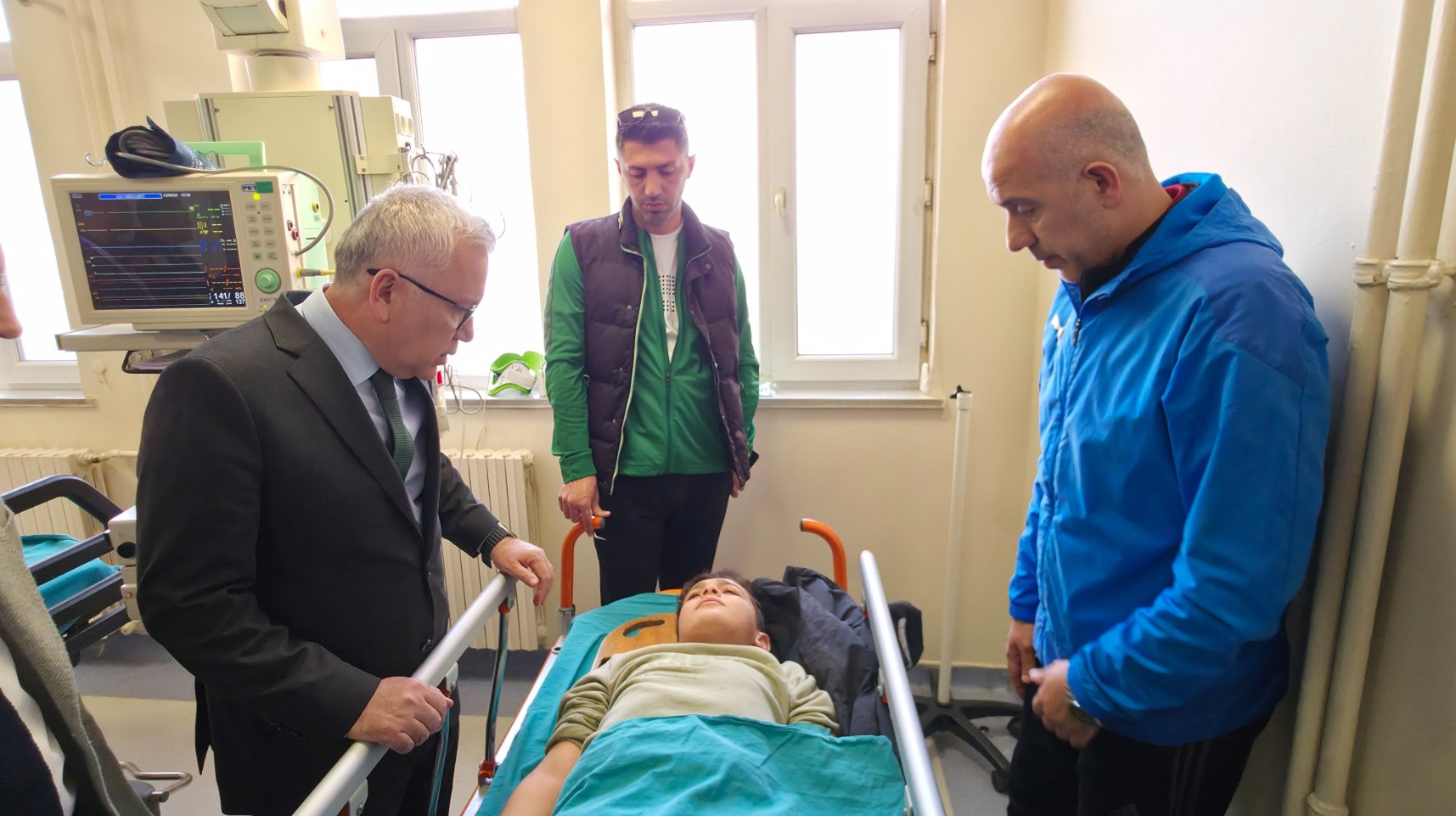Öğle saatlerinde Sivasspor Vali Lütfullah Bilgin Tesisleri önünde meydana gelen kazada yaralanan Sivasspor U13 takımı sporcuları ile araç sürücülerini Sivas Cumhuriyet Üniversitesi Hastanesi’nde ziyaret eden Sivas Valisi Yılmaz Şimşek, sağlık durumlarına ilişkin bilgi aldı.