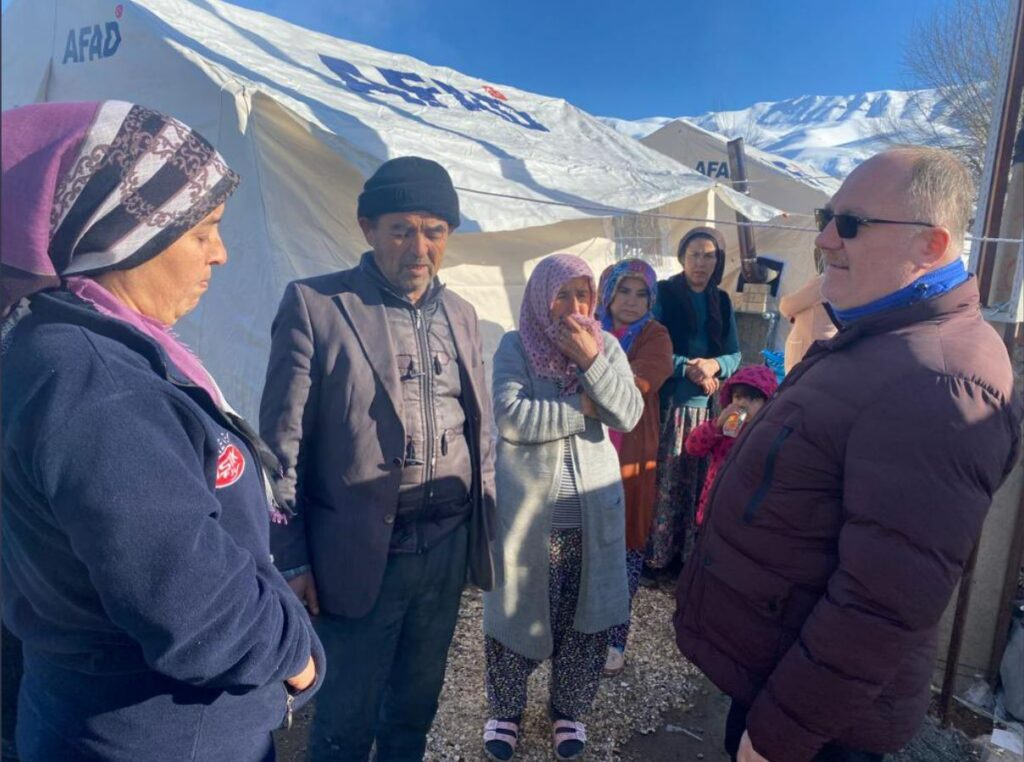 Sivas Valisi Yılmaz Şimşek ve Sivas Belediye Başkanı Hilmi Bilgin Malatya Erkenek'te kurulan çadır kenti ziyaret ederek depremden etkilenen vatandaşlarla bir araya geldi.