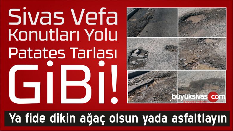 "Sivas Özbelsan vefakonutlarına giden yol durumu... Arabalar zikzak çizerek gidiyor bu cukurlari yolu bilmeyen biri gormeden gitse resmen kazaya sebebiyet"