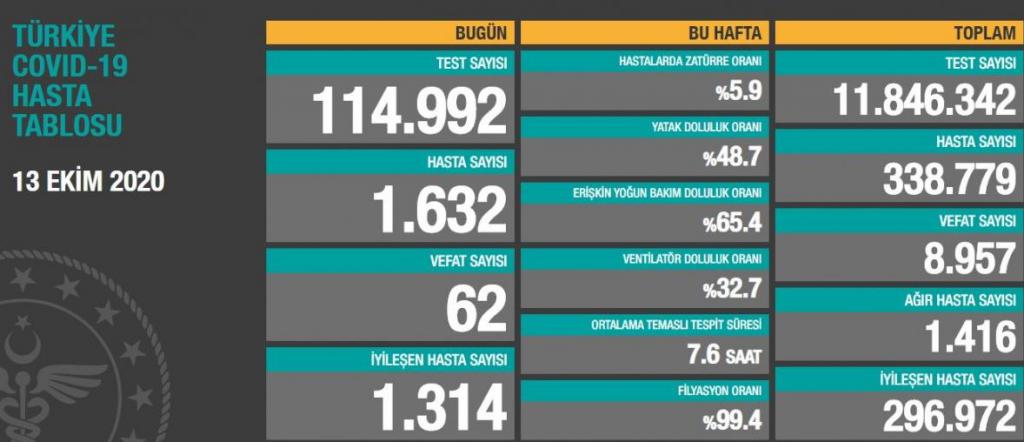 13 Ekim'de Virüs 62 can daha aldı! Hasta sayısı 338 bin 779