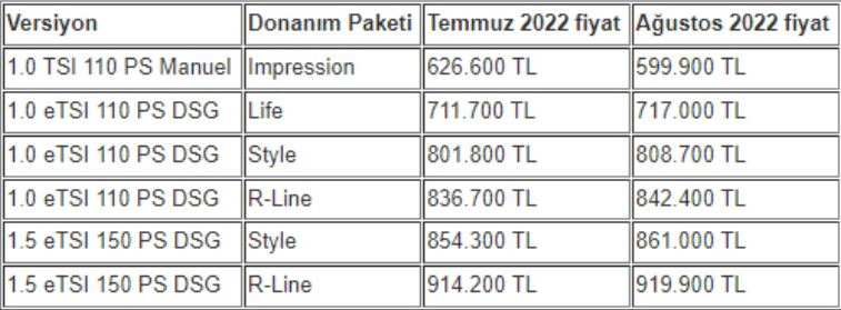 Golf'ün başlangıç modeline indirim yapılmış olsa da diğer donanım ve motor seçeneklerinde böyle bir durum yok. Tüm versiyonlar en az 6.000 TL civarında zamlanmış durumda.