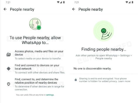 Buna göre WhatsApp, yakın mesafede bulunan kullanıcıların kendi aralarında dosya alıp göndermelerini sağlayacak bir özellik üzerinde çalışıyor.