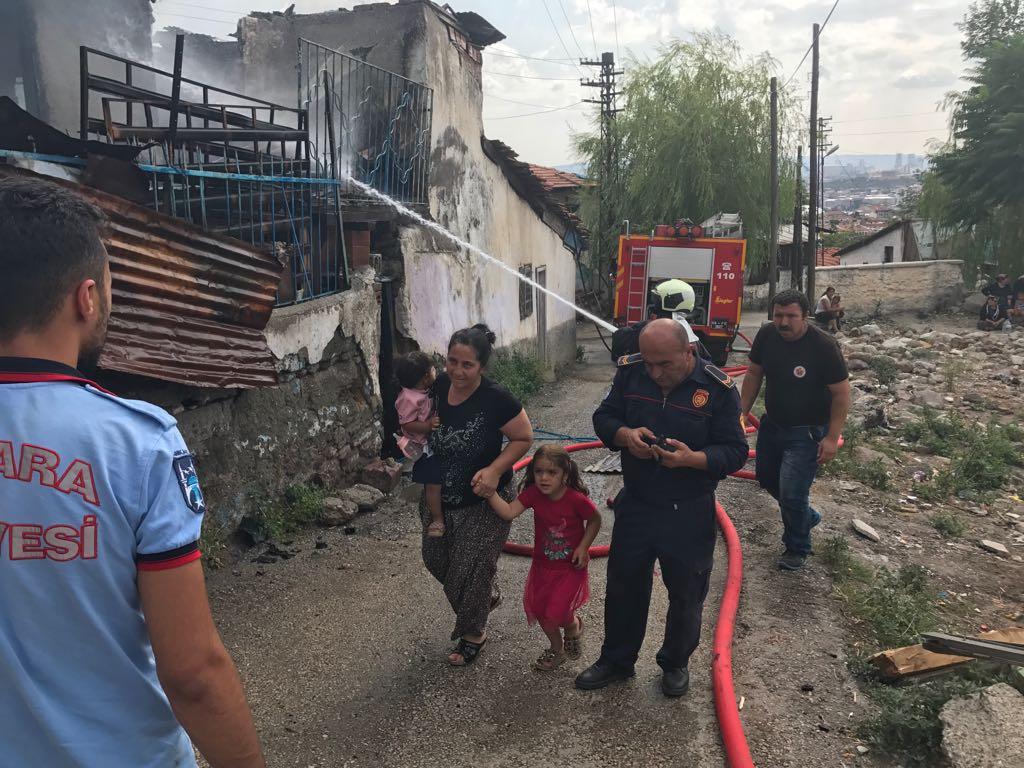Ankara'nın Altındağ ilçesinde yanan evde mahsur kalan 3 yaşındaki çocuk, itfaiye ekiplerince kurtarıldı.(AA)