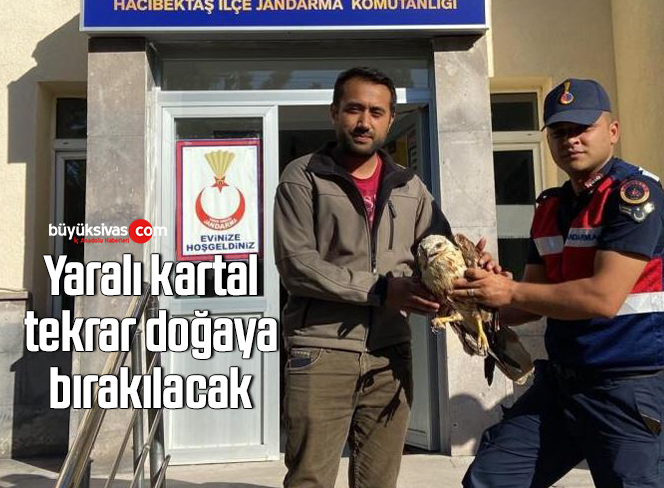 Jandarma Çevre, Doğa ve Hayvanları Koruma Timi tarafından bulunduğu yerden alınan kartal, tedavisi yapılarak tekrar doğaya bırakılmak üzere; Nevşehir Doğa Koruma ve Milli Parklar Şube Müdürlüğüne teslim edildi.(İHA) - Büyük Sivas Haber