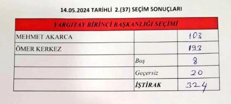 Ömer Kerkez, 14 Mayıs 2024 Salı günü gerçekleştirilen 37. tur oylamada, 193 oyla Yargıtay Başkanı seçildi.(Emre Gençleşen)