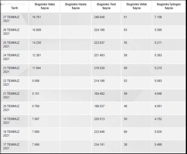 19 bin 761 kişinin pozitif olduğu 27 Temmuz'da, 51 kişi hayatını kaybetti.