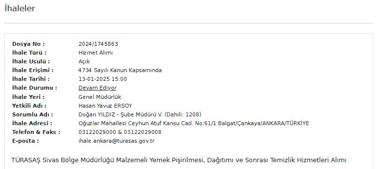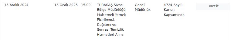 Alınan karara göre Türasaş Sivas Bölge Müdürlüğünün 2025 yılı yemek ihalesi Türasaş Genel Müdürlüğü tarafından uzman ve ihale konusunda bilgili kişilerce Ankara'da yapılacak.