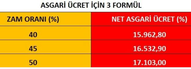 6 aylık enflasyon rakamları ve memur zam beklentileri dikkate alındığında yüzde 39,61 ve yüzde 51,46 oranı yeni asgari ücret için zam müzakereleri olarak masada yer alacak. Kabaca yeni asgari ücret için yüzde 40, 45 ve 50 formülü üzerinde şekillenecek.