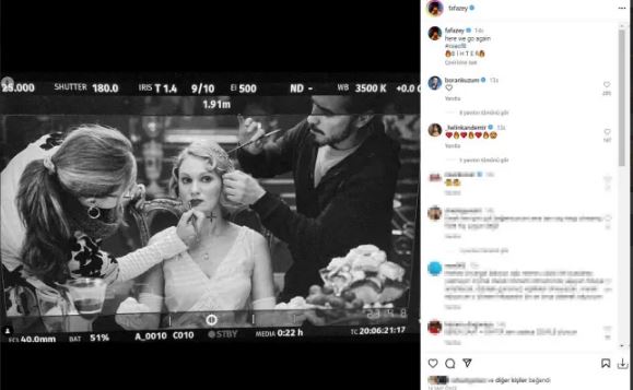 Çekimleri hızla devam eden filmde Bihter'i oynayan Farah Zeynep Abdullah, Instagram hesabından sette hazırlanırken çekilen bir fotoğrafını paylaştı. Oyuncunun "İşte yine başlıyoruz. Bihter" notuyla yaptığı paylaşıma yorum ve beğeni yağdı.-internethaber