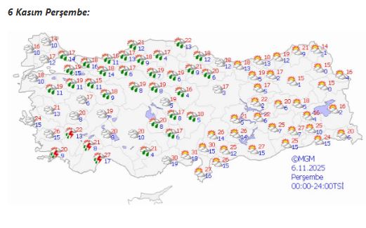 - Marmara’nın batısı (Edirne, Kırklareli, Tekirdağ) gök gürültülü sağanak yağışlı olacak.